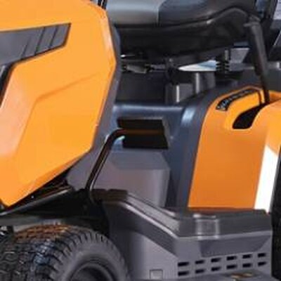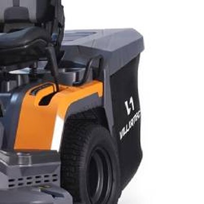- Ключевая особенность модели — вместительный травосборник объемом 320 литров, который значительно сокращает количество остановок для очистки.