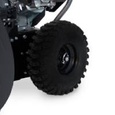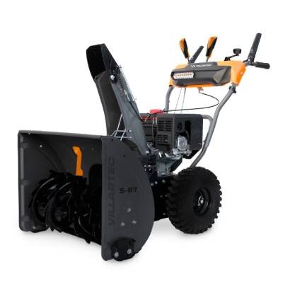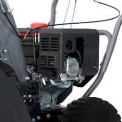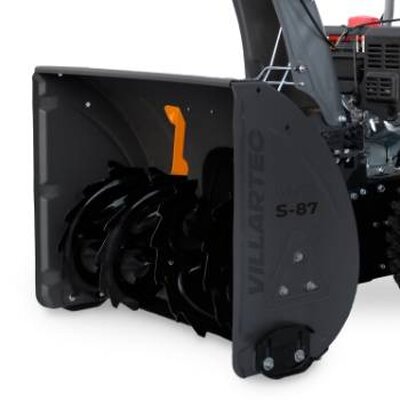 - Прочный стальной шнек с усиленными зубьями легко перемалывает любой снег и наледь, а срезные болты защищают двигатель и редуктор от повреждений при попадании твердых предметов. Ширина захвата снегоуборщика составляет 66 см, а дальность выброса — до 11 метров, что позволяет эффективно очистить двор от сугробов.